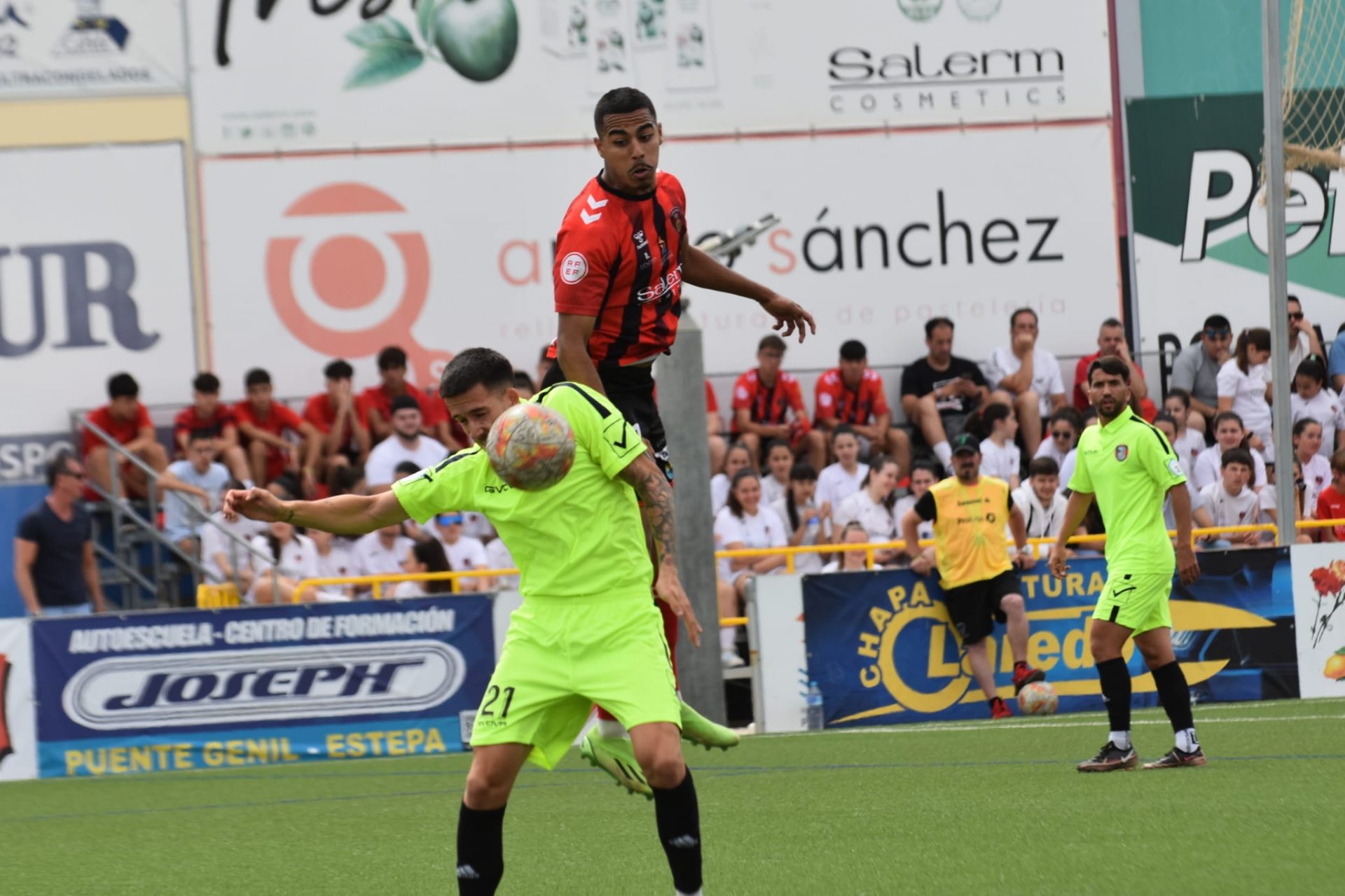 El Salerm y el Gerena protagonizaron un vibrante encuentro en la ida de la primera eliminatoria del play-off de ascenso a Segunda RFEF. Los pontanenses firmaron una extraordinaria primera mitad, pero en la segunda sucumbieron ante la mayor pegada de un Gerena que hizo lo justo para darle la vuelta al resultado en apenas cinco minutos, aunque en el añadido Rubén Jurado logró la igualada.