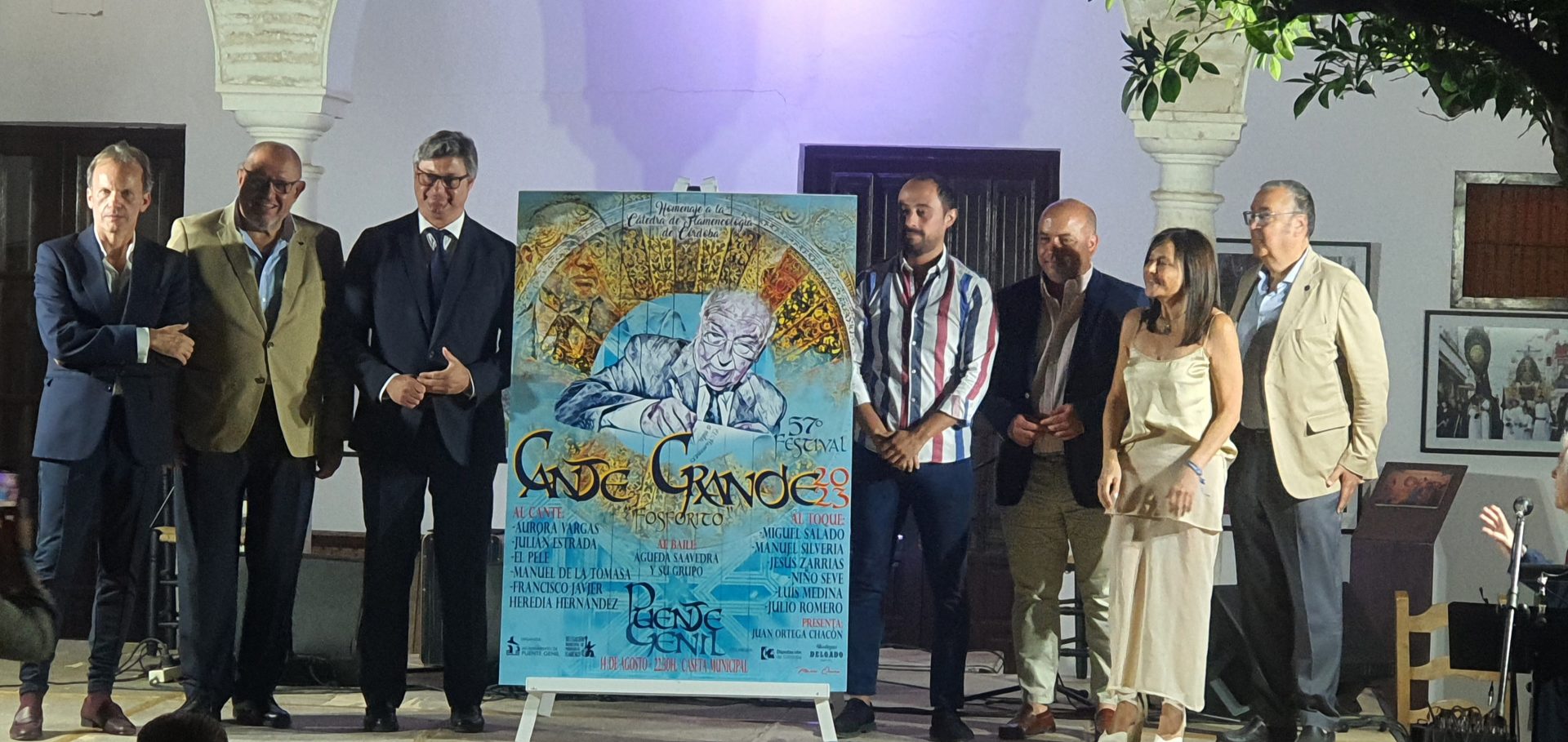 El claustro del Ex Convento de Los Frailes ha acogido esta noche el acto de presentación del cartel anunciador del LVII Festival de Cante Grande “Fosforito”, cita previa al evento que siempre suele despertar un gran interés entre los aficionados al flamenco. Cartel realizado por el artista local Mario Quero.